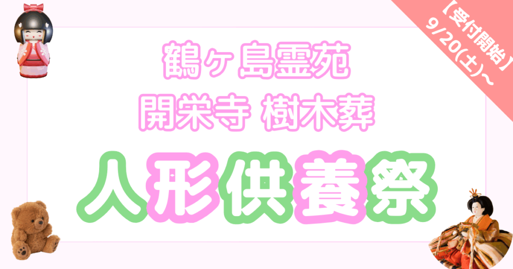 大切にしてきた人形やぬいぐるみを「ありがとう」と「おつかれさま」の想いとともにお見送りする人形供養祭を開催いたします。