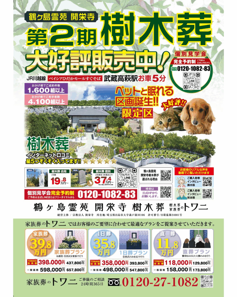 この度、トワニグループでご案内している永代供養墓(開栄寺樹木葬)とご葬儀(家族葬のトワニ)のポスターができました!