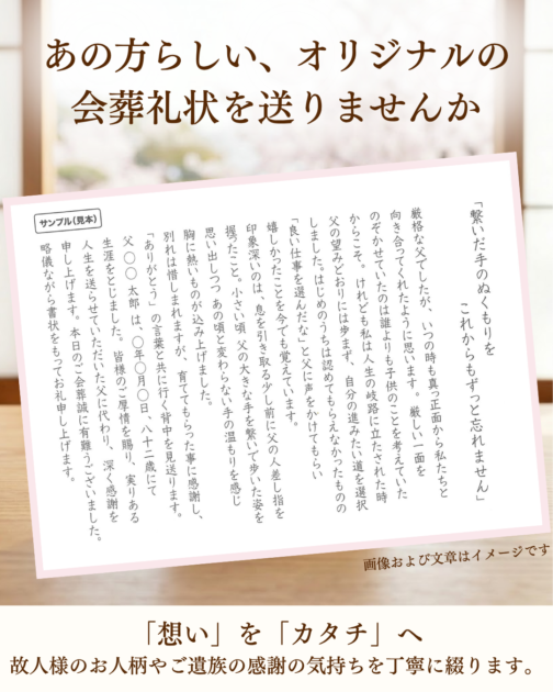 「あの方らしい」最後のお別れを。想いを綴る『オリジナル会葬礼状』のご提案